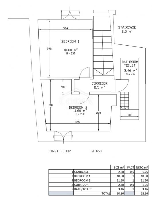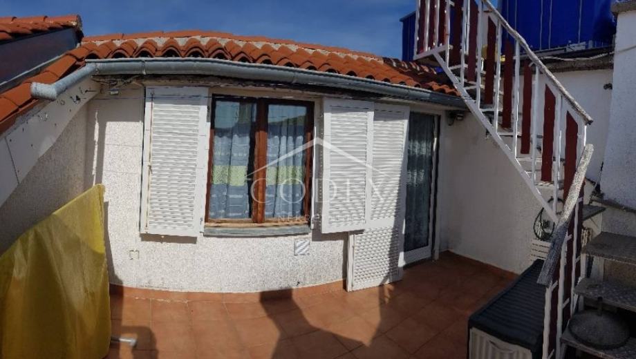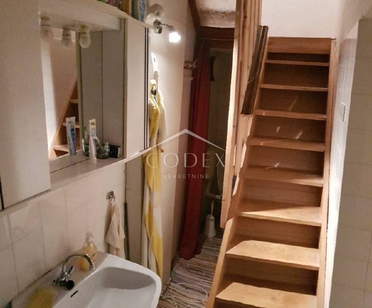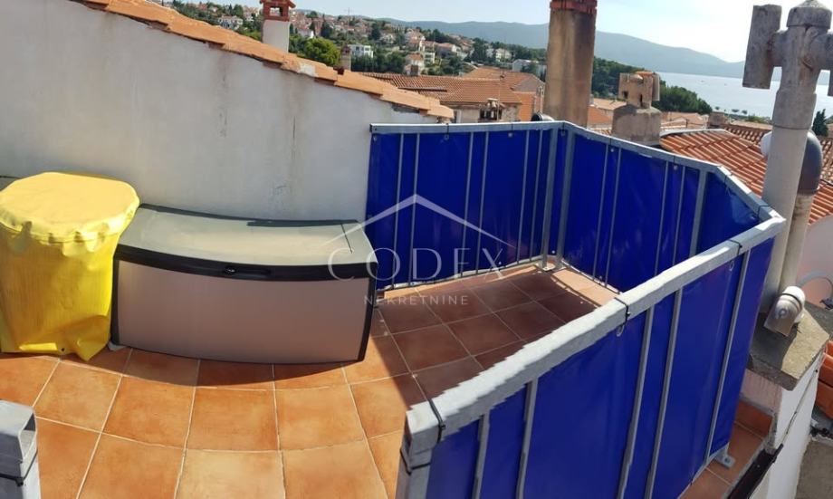 Na prvom katu nalaze se dvije spavaće sobe, druga kupaonica s toaletom te stubište koje vodi u potkrovlje, gdje se nalazi manja kuhinja. Potkrovlje obuhvaća dnevni boravak i spavaći dio sa sjedećom zonom, iz kojeg se izlazi na prekrasnu terasu iznad krovova starog grada, s vlastitim zidanim roštiljem. Još jedno stubište vodi na sunčanu terasu s koje se pruža otvoreni pogled na otoke Rab i Cres.