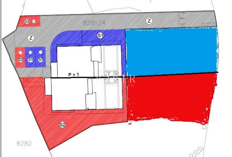 Nekretnine, u naravi dvije jednake dvojne kuće 150m2 + 150m2, ukupno 300m2 stambene površine razvedene su na dvije etaže, prizemlje i kat. Svaka kuća funkcionira kao zaseban objekt sa odvojenim ulazima, brojilima i potrošačima. U prizemlju svake kuće se nalazi kuhinja koja zajedno sa blagovaonicom i dnevnim boravkom predstavlja predivan koncept otvorenog prostora s izlazom na terasu sa koje se pruža spektakularan pogled na more i Sjeverni Velebit. Osim navedenih prostorija, u prizemlju svake kuće se također nalaze wc i vešeraj.