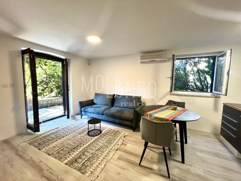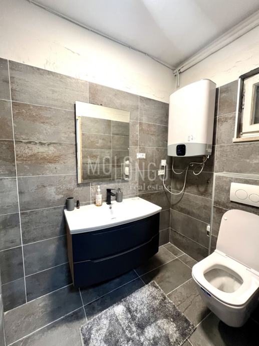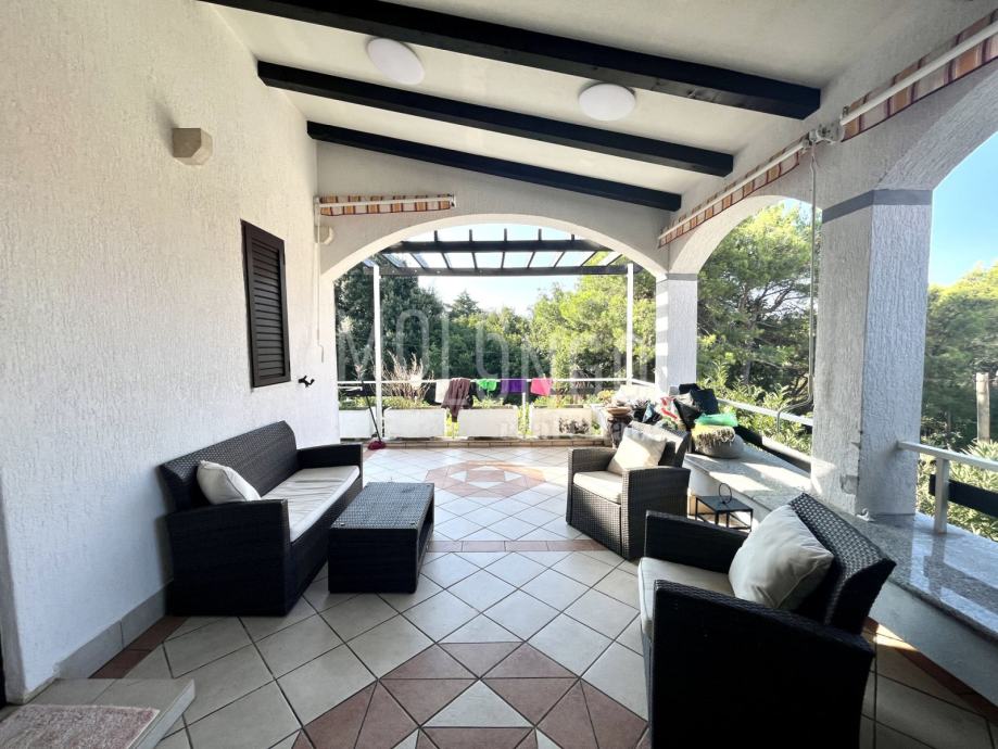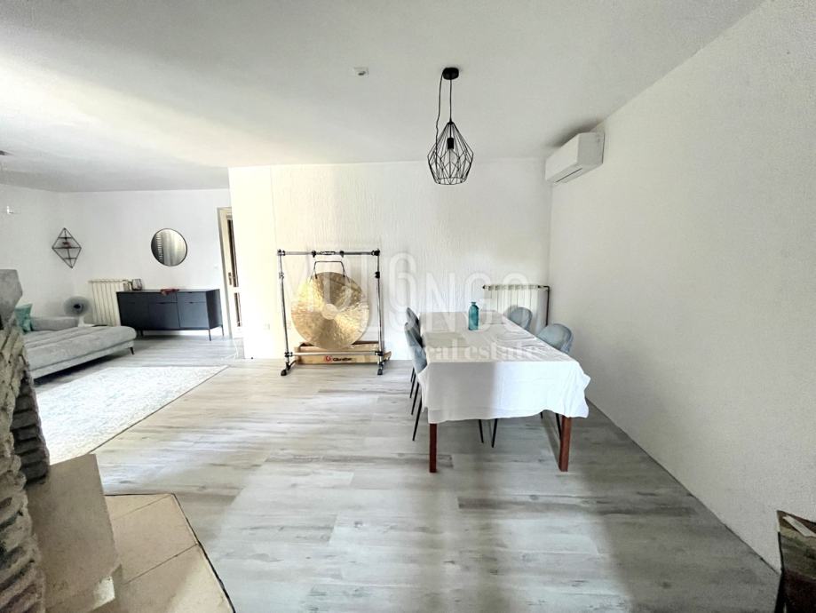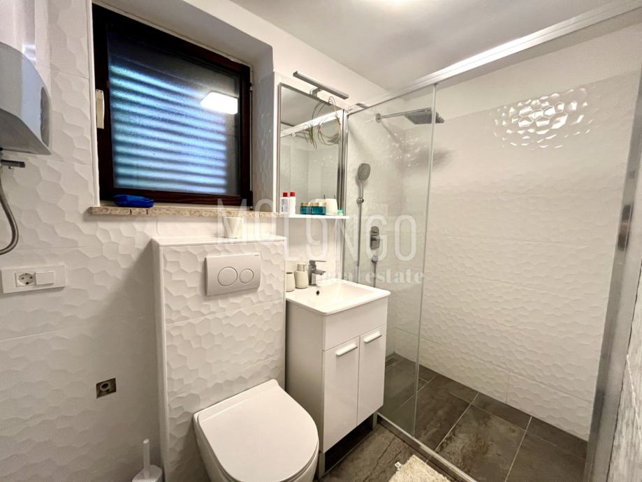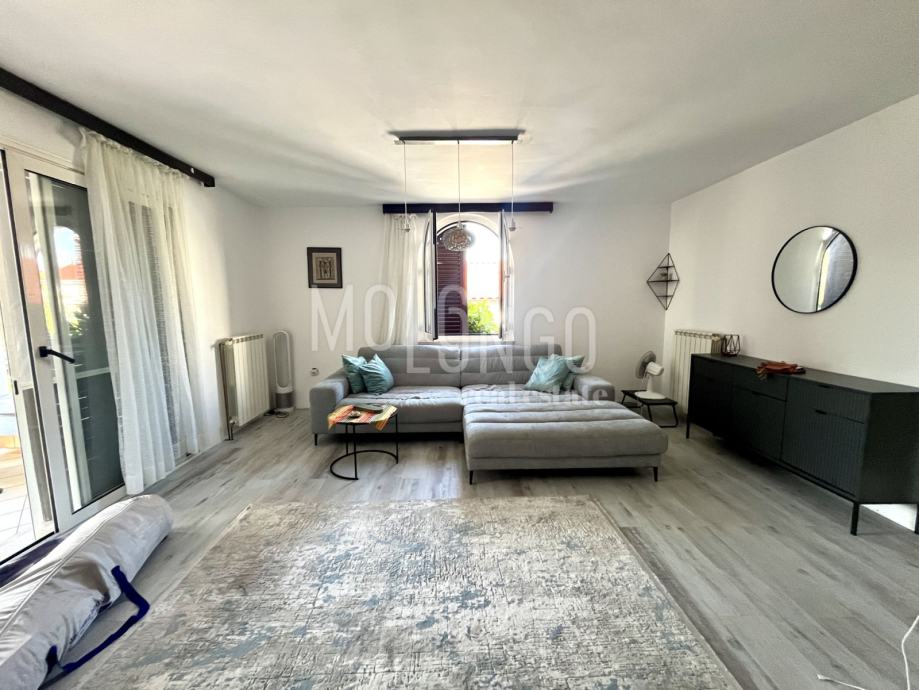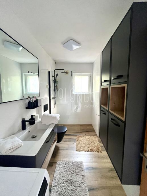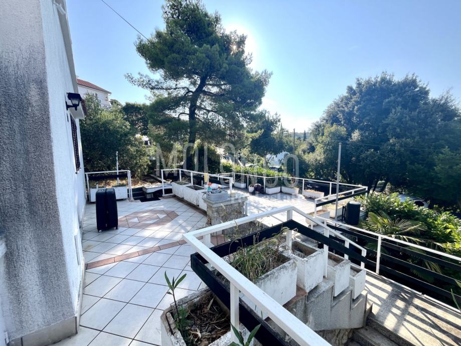 Kuća je katnica, u prizemlju se nalaze 2 uređena jednosobna apartmana, kotlovnica, spremište, ured i garaža.
