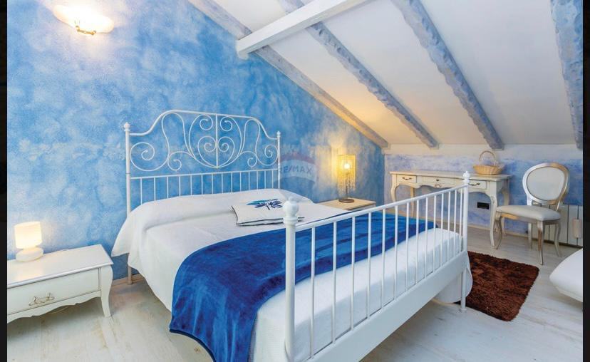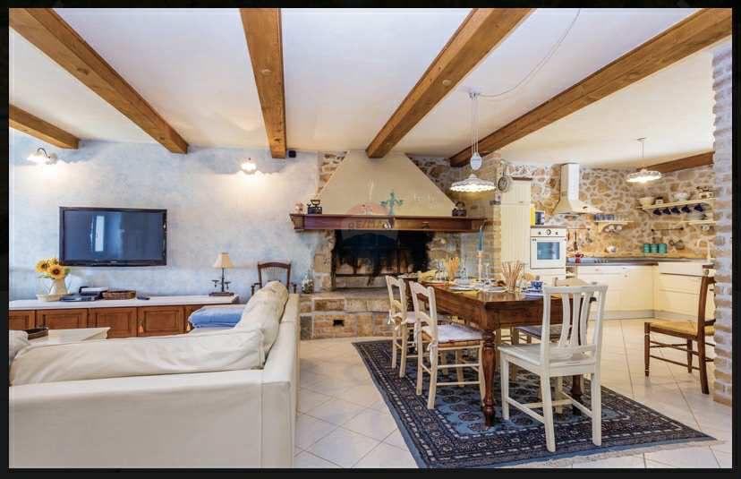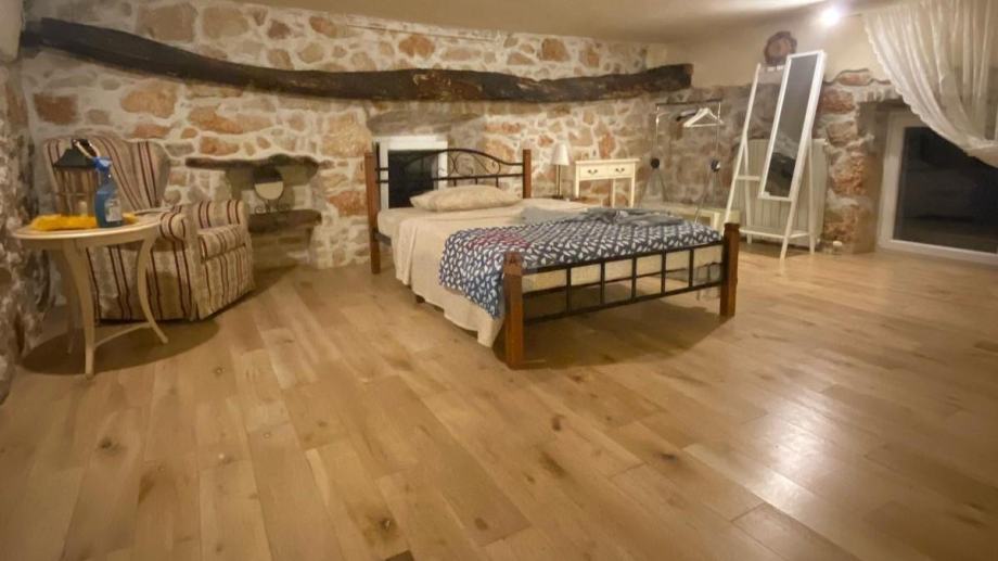 U prizemlju se nalaze konoba, autentična kamena mlina, dodatni toalet, tehnički prostor, natkrivena vanjska kuhinja. Prvi kat nudi svijetao i prostran dnevni boravak s prekrasnim kaminom, kuhinju s blagovaonicom, kupaonicu i moguće kreirati spavaću sobu koja trenutno služi kao drugi dnevni boravak. Također, na ovom katu nalaze se dvije terase za uživanje na otvorenom. Na drugom katu nalaze se tri prostrane spavaće sobe i kupaonica.