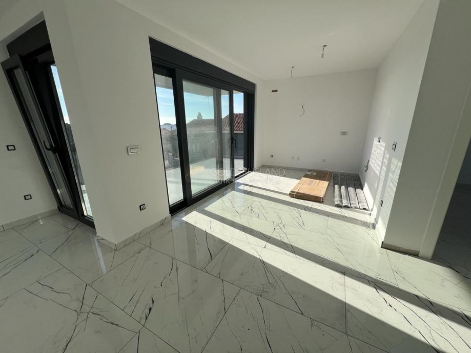 Stan se sastoji od dnevnog boravka, kuhinje, blaogovaonice, kupaonice i dvije spavaće sobe, velike natkrivene terase sa pogledom na more.
