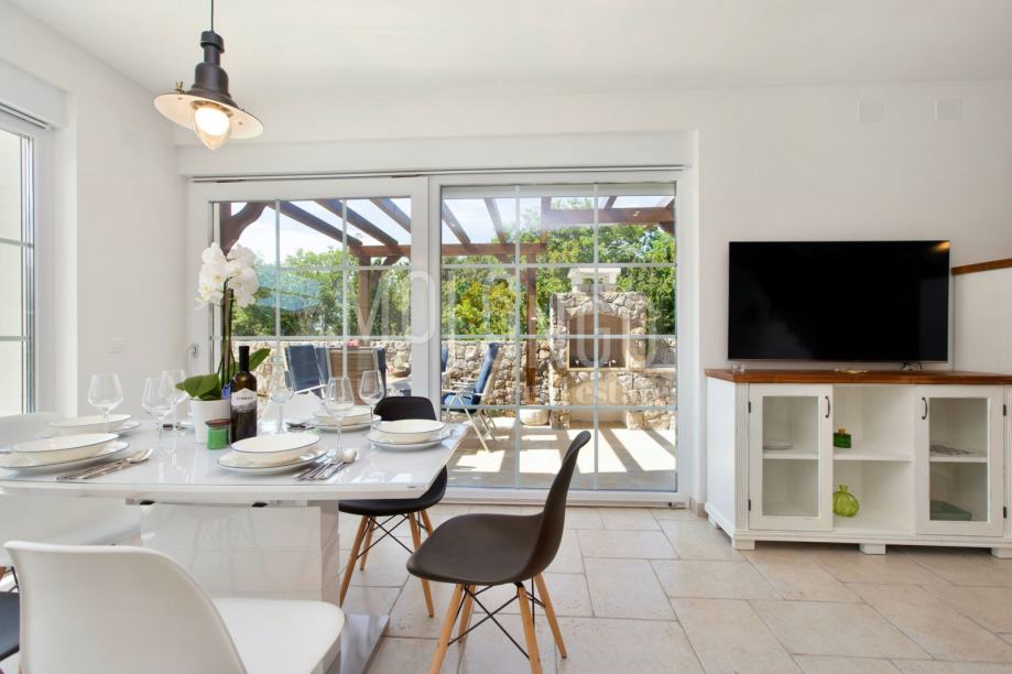 Iz ponude kuća za odmor na otoku Krku izdvajamo ovu bezvremenski uređenu katnicu u nizu.