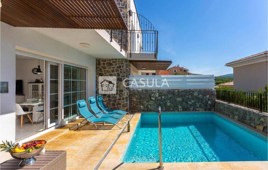 Krk, okolica grada Krka. Moderna villa s bazenom i pogledom na more!