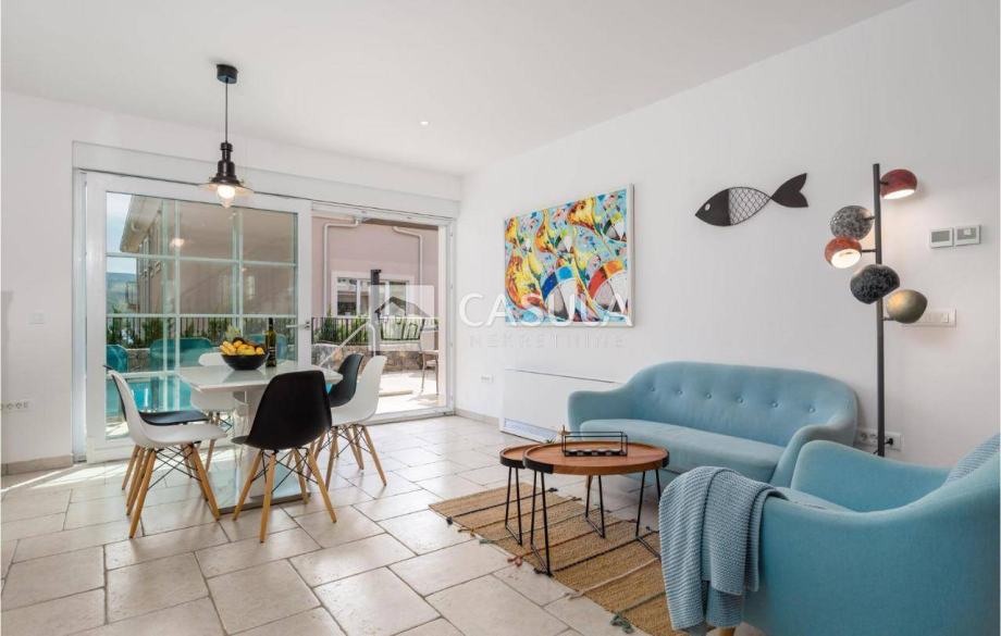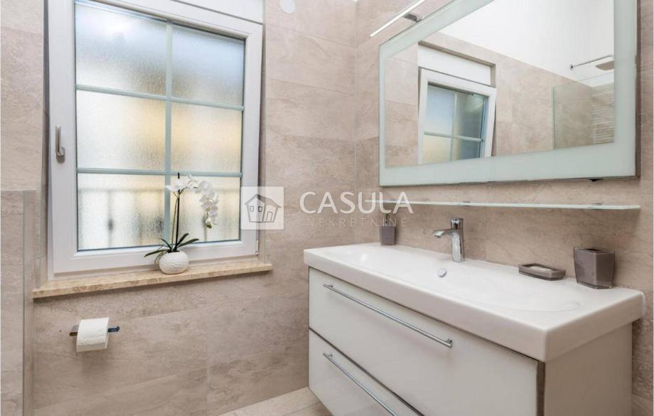 Prodaje se moderna vila površine 110,23 m2 (121,03 m2 s terasama) s okućnicom od 20 m2 i bazenom. Villa je srednja od tri ville u nizu.