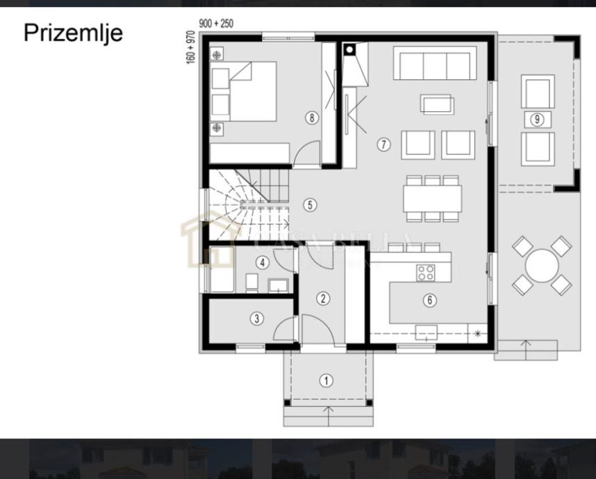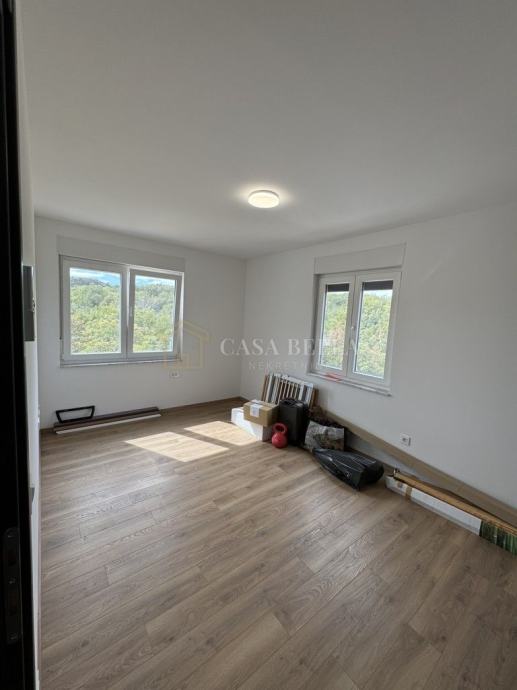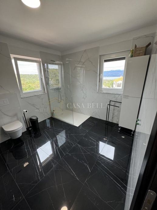 CASA BELLA NEKRETNINE iz ponude izdvaja novogradnju u Vrbniku, modernu i niskoenergetsku kuću površine 152 m2, smještenu na parceli od 828 m2. Teren nudi dovoljno prostora za dodatnu izgradnju bazena, garaže ili pomoćnog objekta. Kuća se sastoji od 4 spavaće sobe, od kojih glavna ima walk-in ormar izrađen po mjeri i natkriveni balkon. Tu su i tehnička soba, manja i veća kupatila, te open space dnevni boravak, kuhinja i blagovaona. Kuća posjeduje natkrivenu i nenatkrivenu terasu, a svaka soba opremljena je klima uređajem. Kupatila su opremljena električnim podnim grijanjem, a postoji i mogućnost grijanja na drva ili pelete, zahvaljujući dimnjaku.