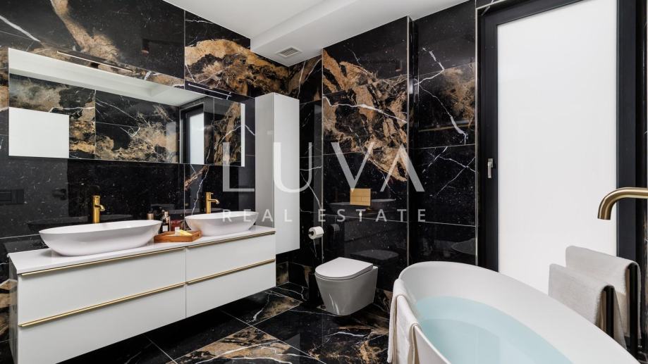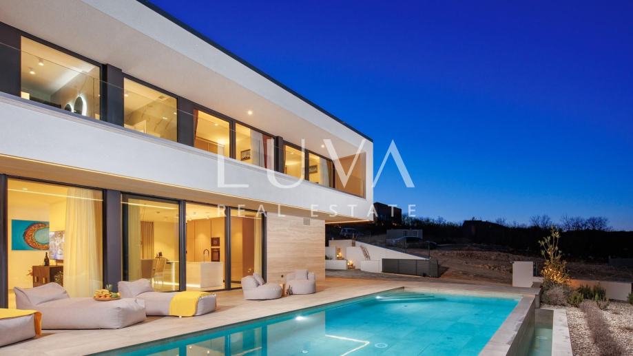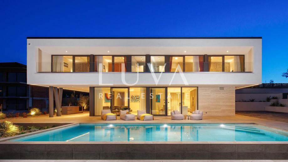Vila ima ukupno 265 m² stambene površine raspoređene na dvije etaže, a projektirana je kao suvremena luksuzna nekretnina koja spaja vrhunski dizajn, funkcionalnost i visoku kvalitetu gradnje.