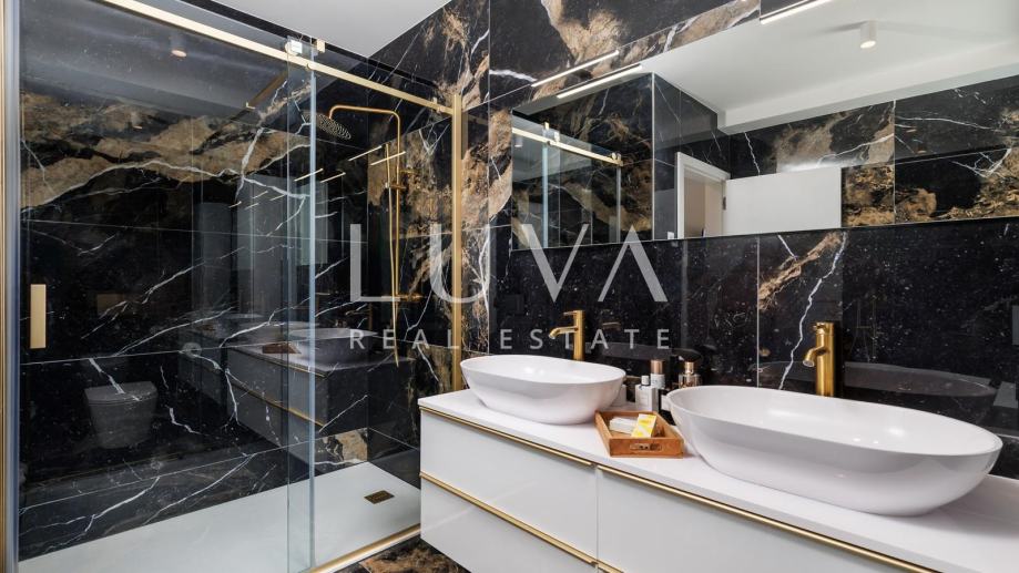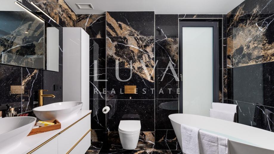 Interijer je opremljen kvalitetnim dizajnerskim namještajem, dok su kupaonice uređene vrhunskom keramikom i sanitarijama.