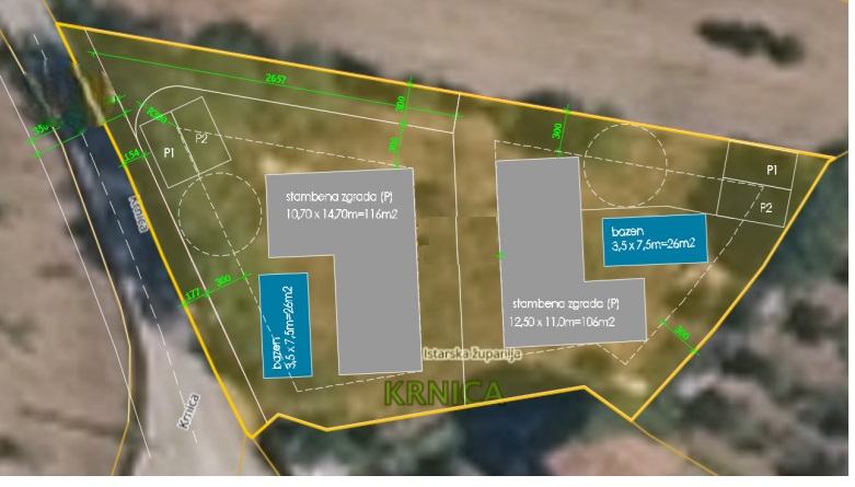 Prodaje se građevinsko zemljište površine 1003 m², smješteno u mirnom dijelu Krnice, idealno za izgradnju obiteljske kuće ili vikendice. Postoji mogućnost parcelacije na dvije parcele po 430 m², s pristupnim putem.
