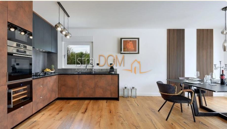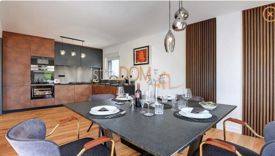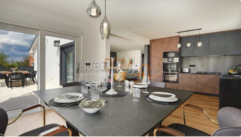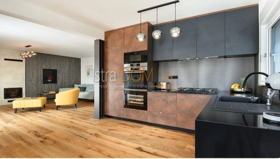 Prostrani dnevni boravak s kuhinjom i blagovaonicom, moderno opremljen i savršeno uređen.