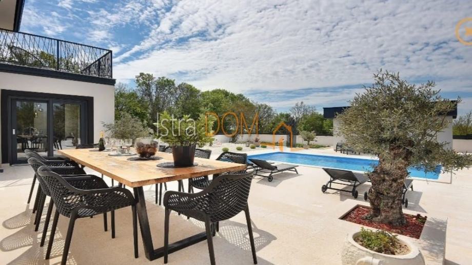 Iz dnevnog boravka izlazi se na vanjsku terasu s sunčalištem i bazenom površine 42 m², koji je savršeno uređen i okružen mediteranskim biljem.