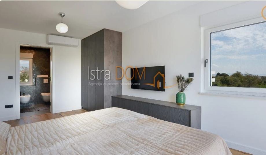 Jedna spavaća soba ima izlaz na terasu s djelomičnim pogledom na more, idealno za uživanje u jutarnjoj kavi.