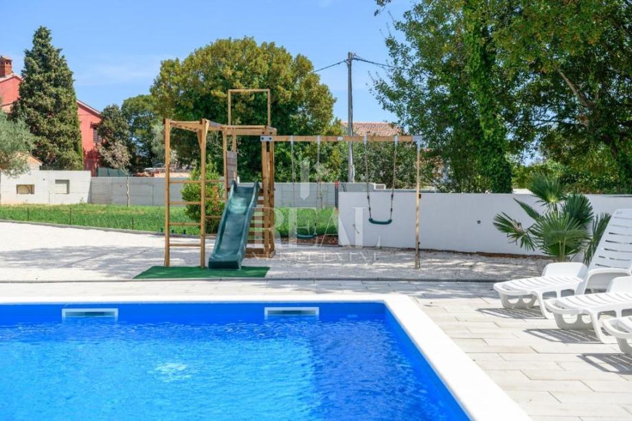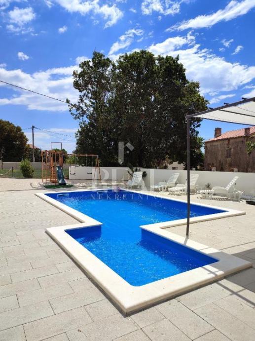 Na prodaju kompletno renoviran objekt koji se sastoji od stare kuće površine 200 m2 i novog nadozidanog objekta od 60 m2. Okućnica ima 1.000 m2 te postoji mogućnost da se napravi još jedan objekt ukoliko bi neko imao interes. Na parceli se nalazi pomoćni objekt površine 35 m2 sa vanjskom kuhinjom, spremištem te WC-om. Bazen je veličine 7×4 a uz njega se nalazi i dječiji dio 2.5×2.5m. Objekt je u funkciji ljetnog najma, te je idealan kao investicija ili za privatne svrhe.