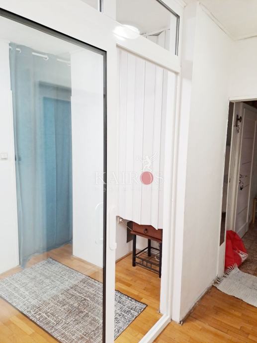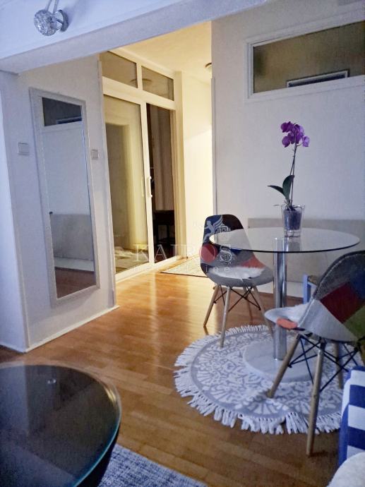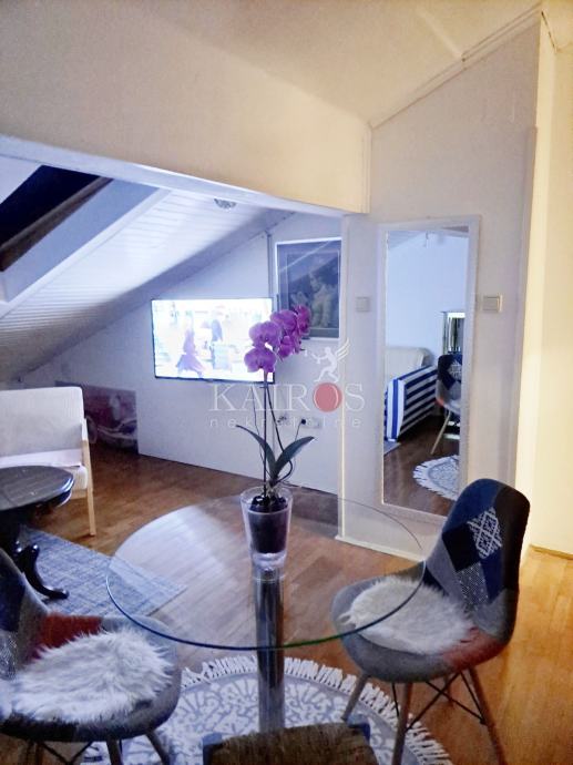 KRNJEVO, 1S+DB, 55 m2, simpatičan, uređen stan na odličnoj poziciji, blizina nekoliko autobusnih linija! Stan je u visokom potkrovlju, u zgradi s liftom. Novi krovni prozori.