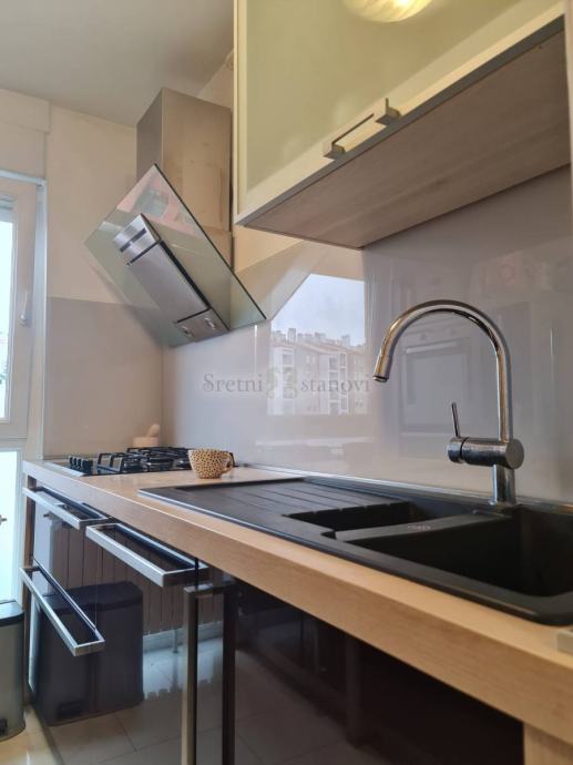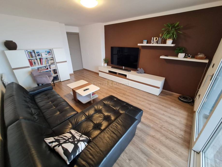 Lijepo uređeni, ugodan stan s prekrasnim pogledom na more i okolicu, na traženoj, izvrsnoj lokaciji Krnjeva, u blizini svih potrebnih sadržaja. Sastoji se od dvije spavaće sobe ( od kojih u prvoj sobi king size box spring krevet 200x180 cm, a u drugoj spavaćoj sobi dva odvojena kreveta ( ali se može urediti i kao radna soba u skladu s potrebama), dnevnog boravka, kuhinje s blagovaonom, kupaone, dodatnog wc-a, ostave, balkona i predsoblja. Orijentacija sjever - jug je idealna kombinacija za spavanje i boravak u sunčanom dijelu stana. Stan ima centralno grijanje i klimatizaciju. Potpuno je namješten i opremljen i ima sve aparate. Kabelska tv i internet su aktivni-flat optički internet. Lift je u zgradi. U okućnici je dovoljno mjesta za parkiranje. Režije se plaćaju posebno. Internet je aktivan-flat optički internet.
