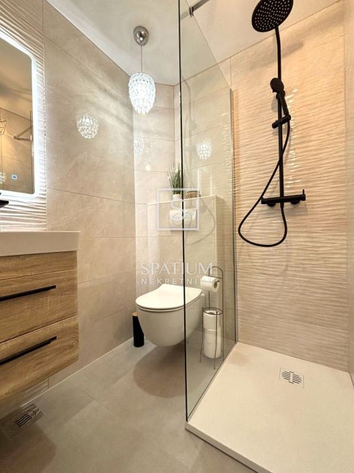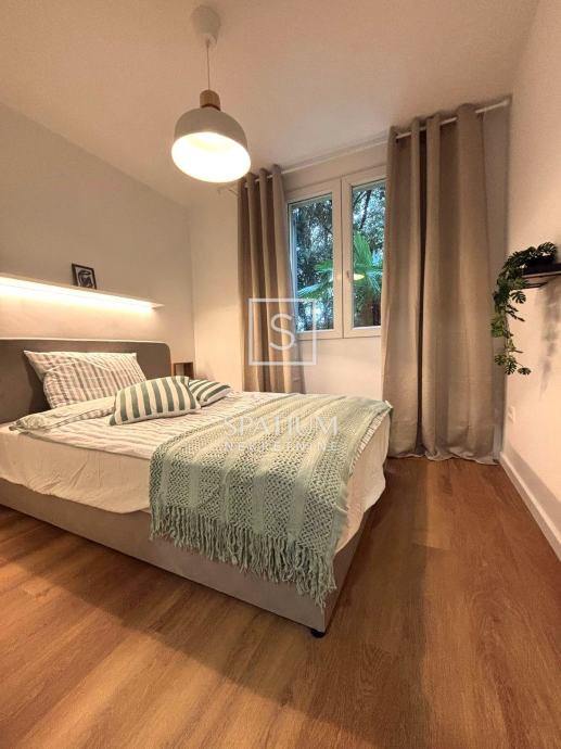 Prilikom renovacije kompletno su zamijenjene instalacije struje i vode, nova kupaonica, kuhinja s novim ugradbenim aparatima, PVC stolarija, klima uređaj te je cijeli stan na novo požbukan i pregletan. Postavljene su visokokvalitetne vinilne podne obloge te je kupljen moderan namještaj zajedno sa posteljinom, zavjesama i svim kuhinjskim priborom (tanjuri, jedaći pribor, čaše....). U stanu je proveden i optički internet.