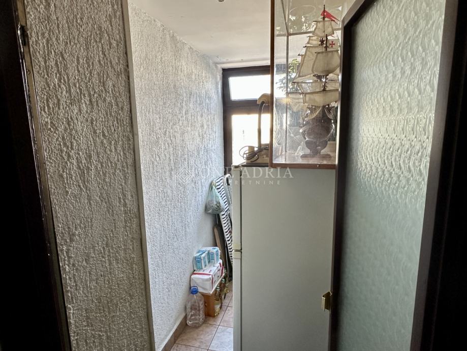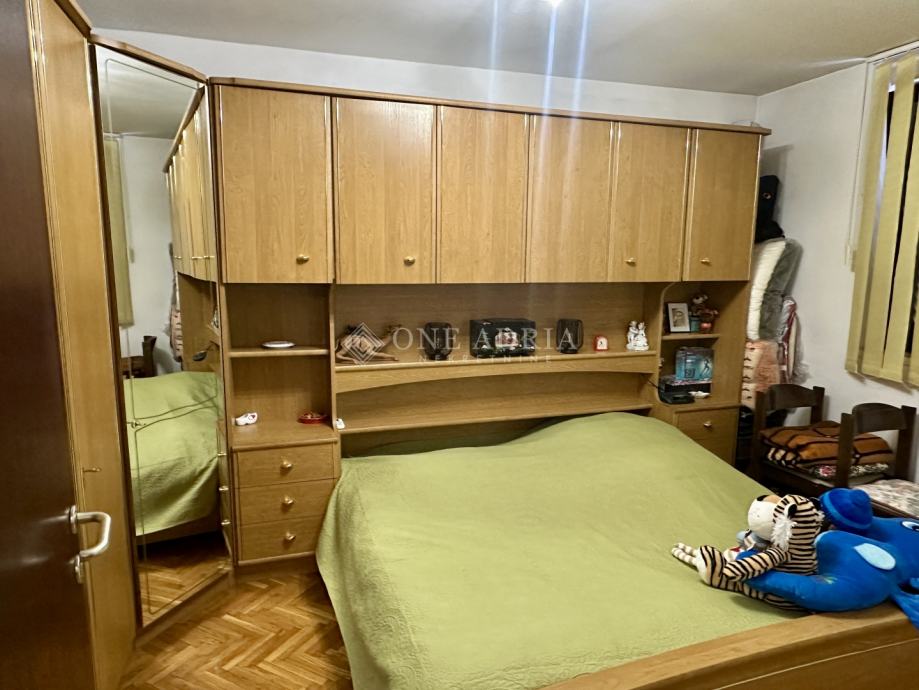 Stan se nalazi u lijepo održavanoj i očuvanoj zgradi s dva nova lifta. Sastoji se od tri spavaće sobe, hodnika, kuhinje s blagovaonicom i dnevnim boravkom, kupaonice, odvojenog WC-a te dva spremišta (špajze). Dodatnu vrijednost nekretnini daju još dva velika vanjska spremišta koja pripadaju stanu.