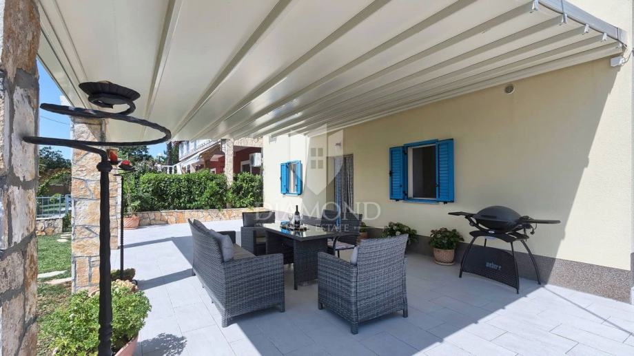 Lokacijski je nekretnina također odlično smještena, na samom rubu naselja gdje je kvalitetan odmor u miru i tišini zagarantiran dok se svi potrebni sadržaji poput trgovine, restorana i kafića nalaze u krugu 3 kilometra. Prometno je lokacija također odlično povezana te se za svega 10 minuta lagane vožnje može doći do prve plaže. Tunel Učka nalazi se na 20 minuta vožnje do spajanja na autocestu.