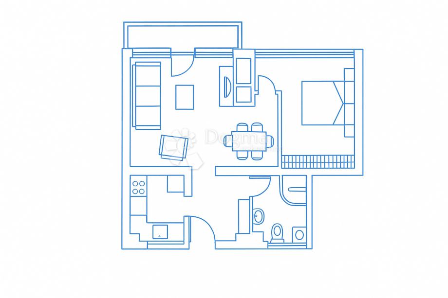 Stan se sastoji od ulaznog hodnika, kuhinje, kupaonice, blagovaonice, prostranog dnevnog boravka s izlazom na balkon te spavaće sobe. Tlocrt je izuzetno funkcionalan, s jasnom odvojenošću dnevnog i noćnog dijela, što omogućuje ugodan boravak i optimalno iskorišten prostor.