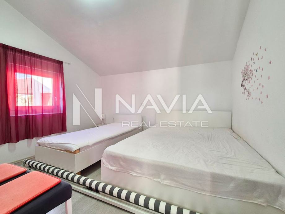 Kuća je smještena u mirnom dijelu, a od plaže i Karinskog mora dijeli vas kratka šetnja.
