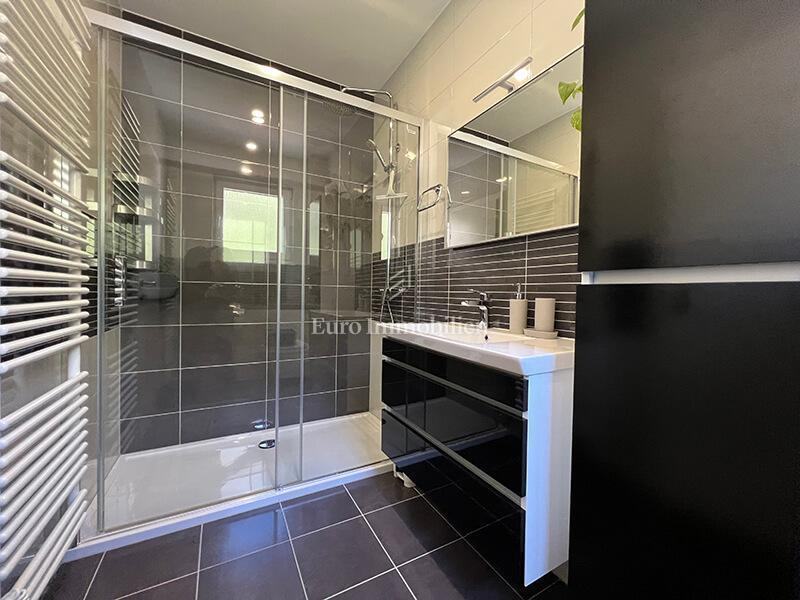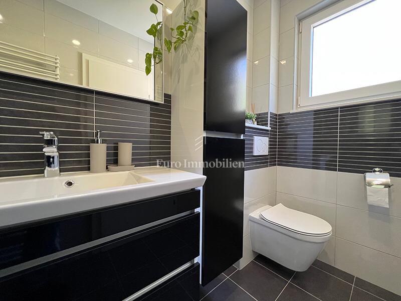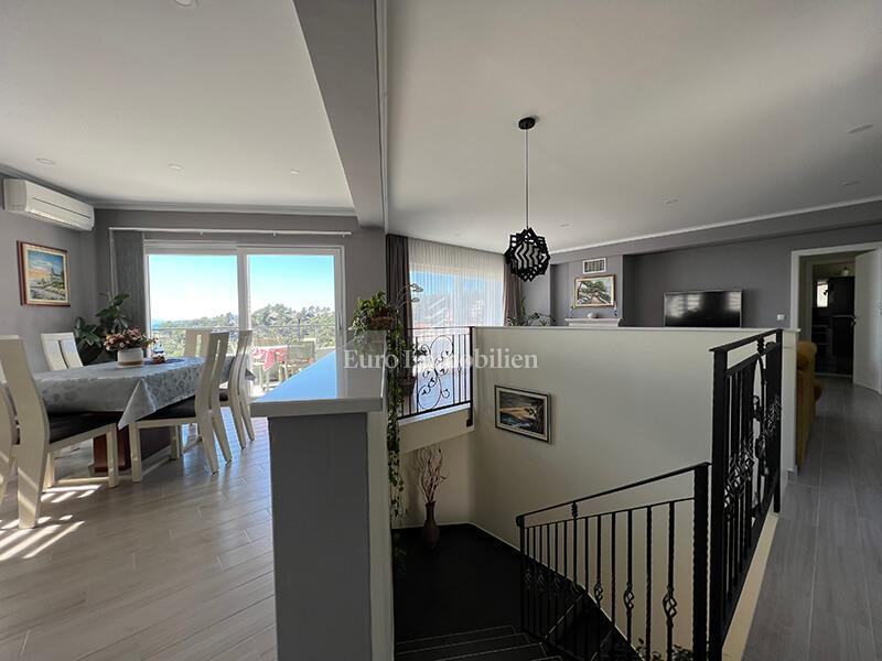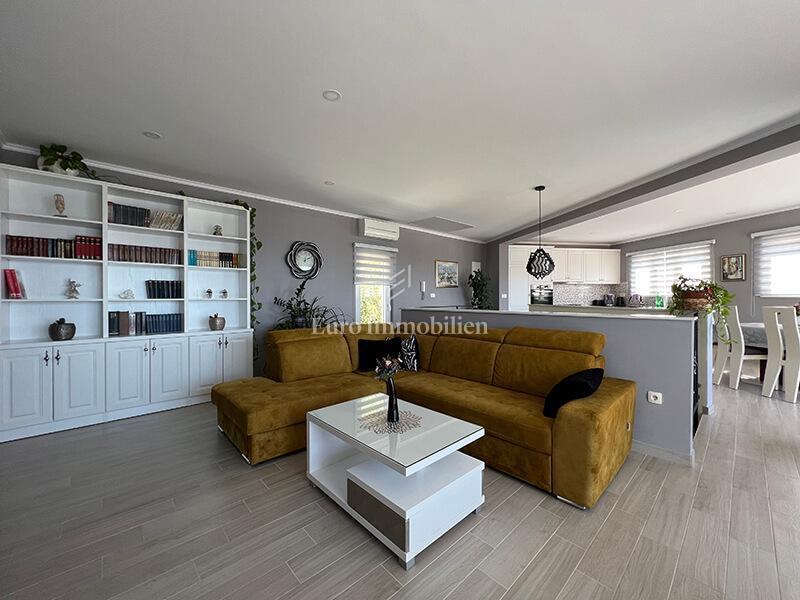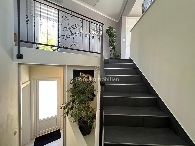 Kuća je potpuno nova, moderno namještena novim namještajem i klimatizirana, te se takva i prodaje. Pri gradnji su korišteni kvalitetno materijali kao vrhunska zvučna i toplinska izolacija, klima uređaji u svakoj sobi, visokokvalitetne keramičke pločice u sobama, podno grijanje postavljeno u kupaonicama, kovana ograda na balkonima i na stubištu, kupaonica u potpunosti opremljena za uporabu, TV, satelit i internet priključak u svakoj sobi. Solarni paneli su postavljeni na krov kuće i instalacije za centralno grijanje su provedene kroz cijelu kuću. Na okućnici je na raspolaganju parking za tri automobila.