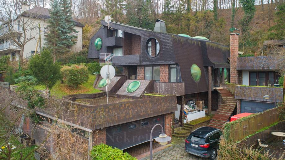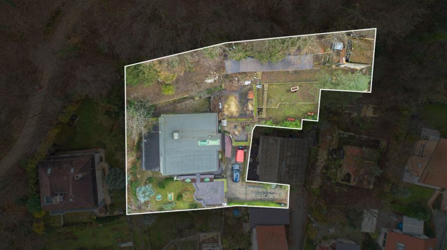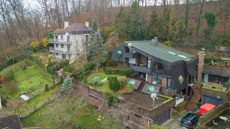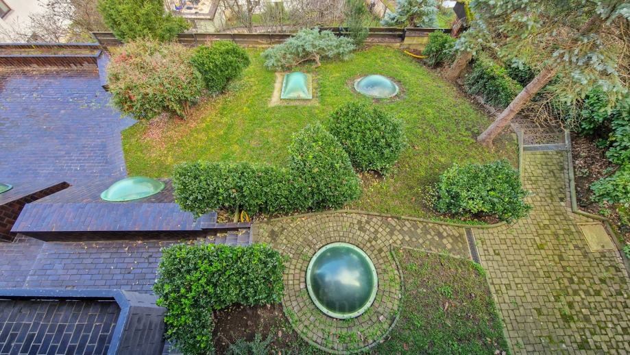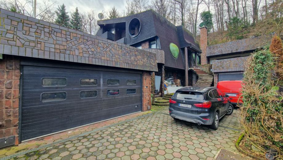 Sadrži i dvije garaže za četiri automobila te pripremu za bazen u suterenu. Potporni zidovi i konstrukcija prizemlja su u dobrom stanju, pa nema potrebe za rušenjem.
