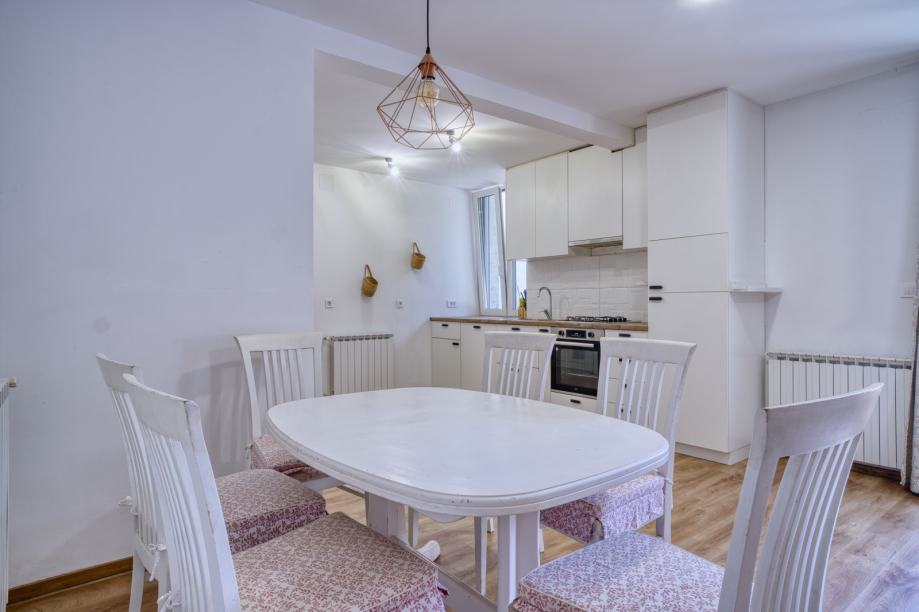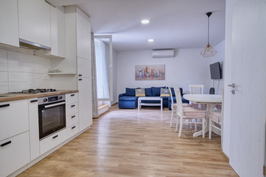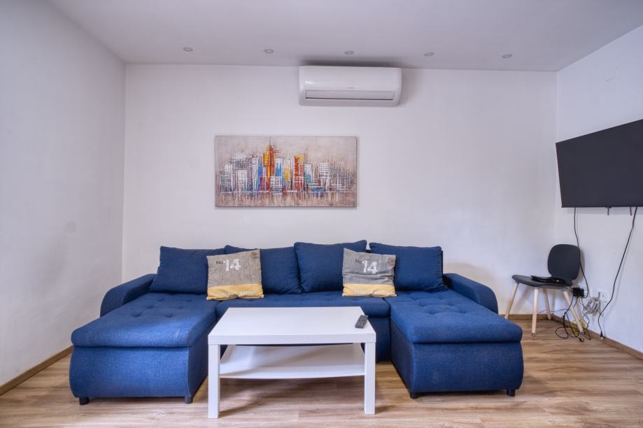 Stan je kompletno namješten, ugrađena su protuprovalna vrata, u dnevnom boravku je instaliran klima uređaj.