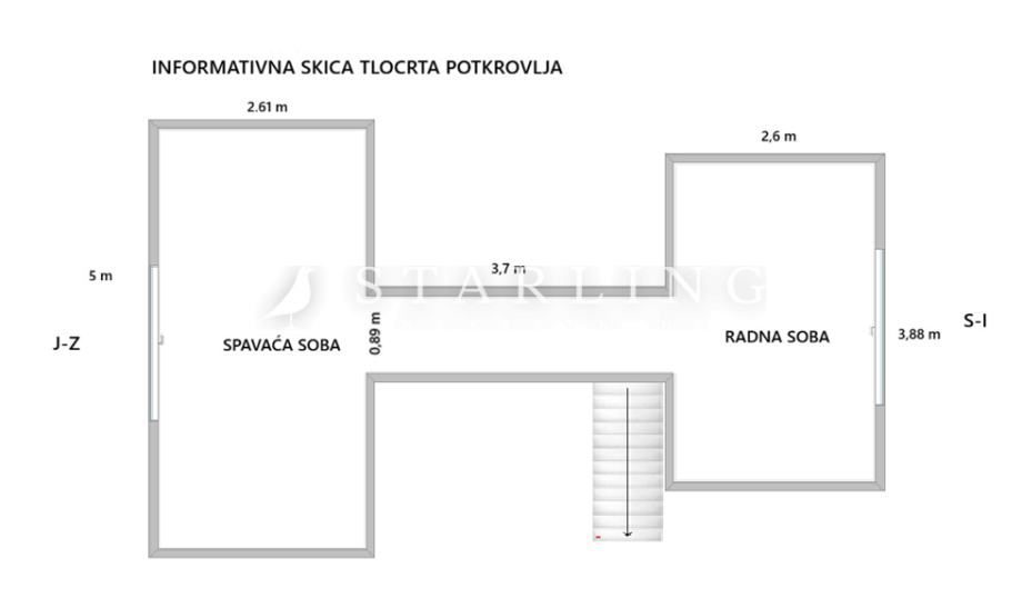 Potkrovlje se sastoji od galerije, spavaće sobe i radne sobe.
