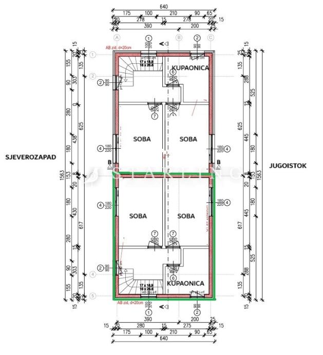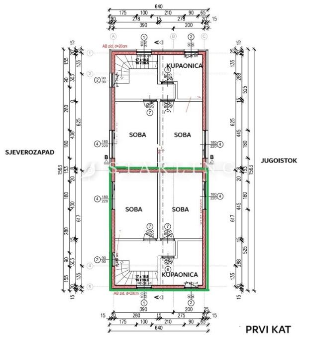 - KATA: stubište, hodnik, 2 spavaće sobe i kupaonica