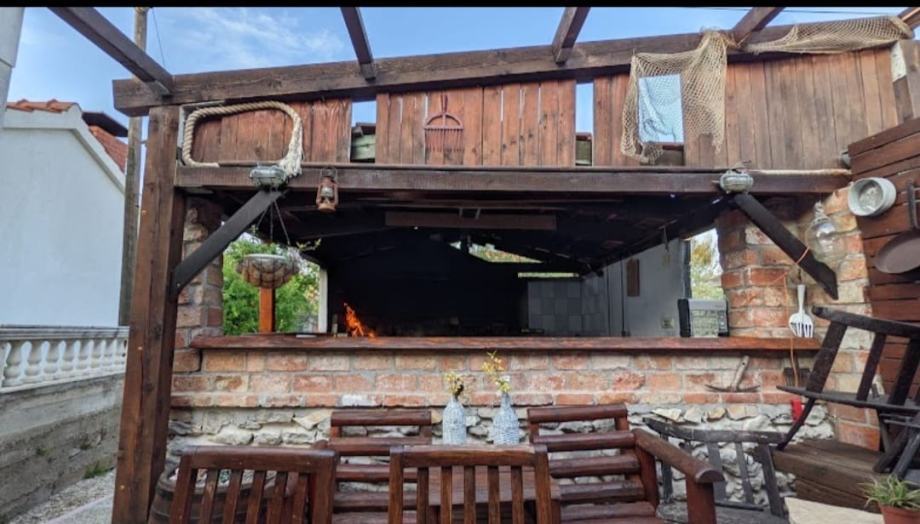 Kuća ima ograđeno dvorište na kojem je velika unutarnja natkrivena terasa s vanjskom kuhinjom koja je dio restorana. U sklopu dvorišta nalazi se dodatni studio apartman.