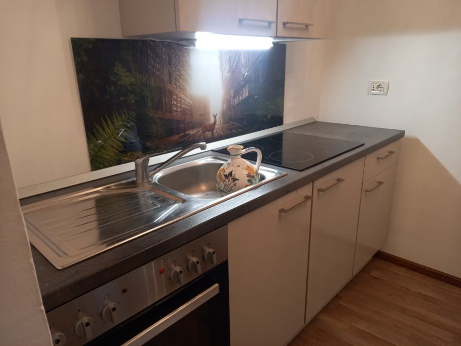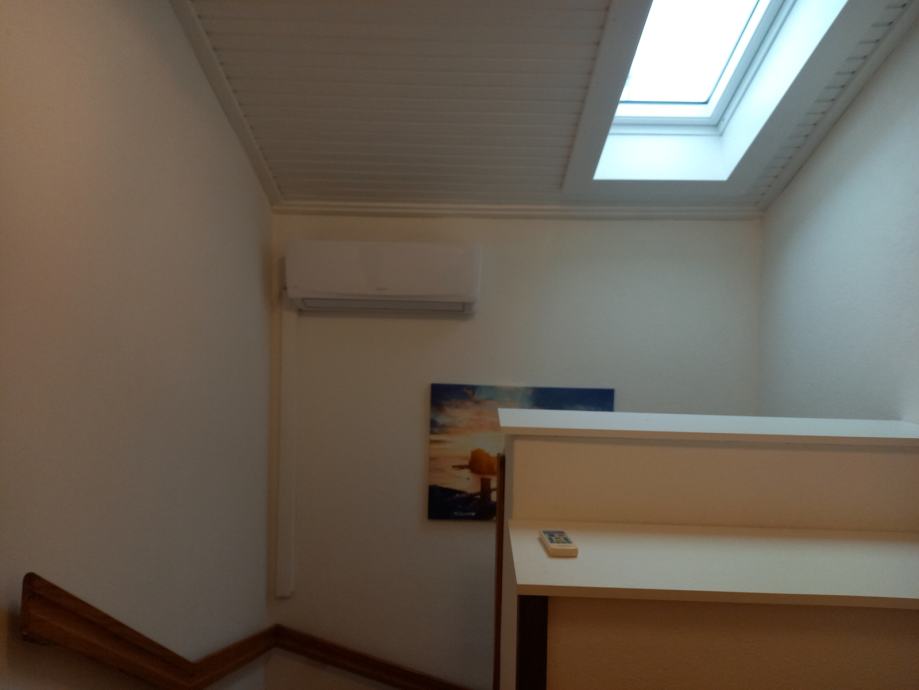 Kuća se sastoji od studio apartmana (30m2) u prizemlju i dvoetaznog stana od 80m2.