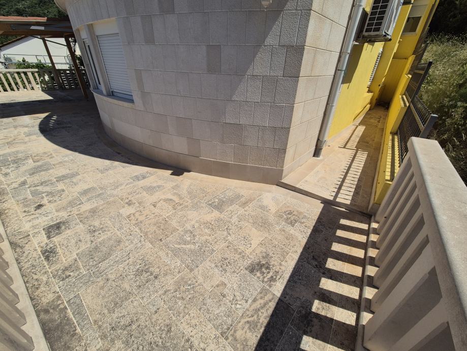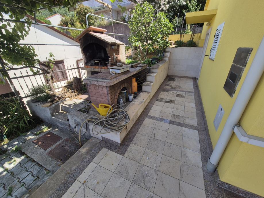 U prizemlju kuće se nalazi velika prostrana dijelom natkrivena terasa, vrt i okućnica sa roštiljom. Kuća je namještena, klimatizirana i spremna je za korištenje.