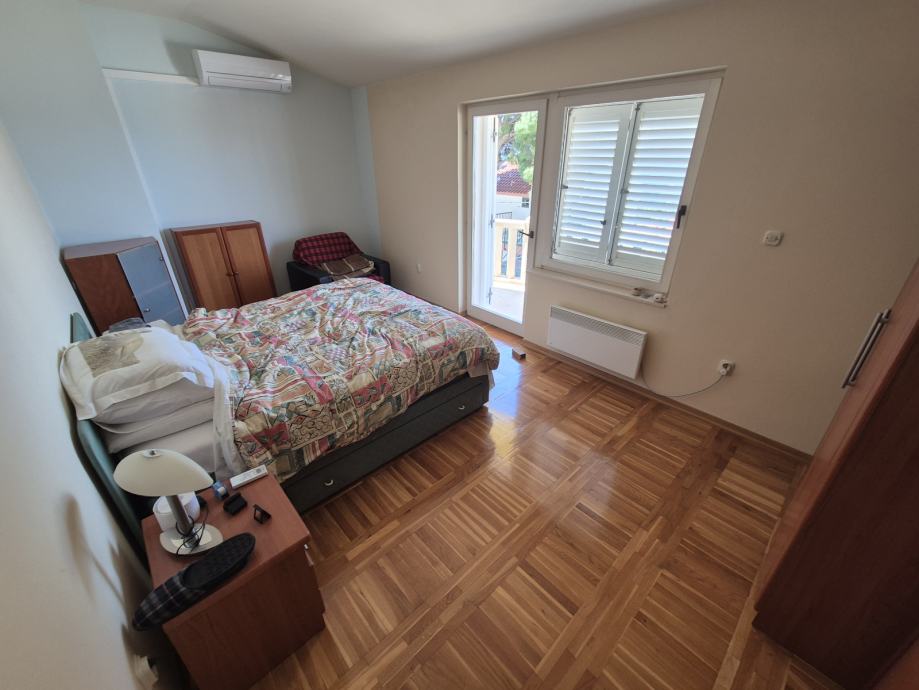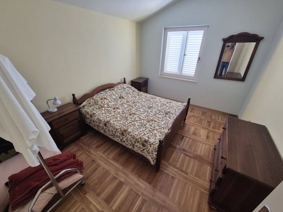 U suterenu kuće se nalaze tri garaže, konoba i podrum. U prizemlju kuće s istočne strane nalazi se stan na dvije etaže koji se sastoji od dnevnog boravka, kuhinje s blagovaonicom te međukata gdje se nalazi kupaonica, garderoba i sprema kroz koju se ide na prvi kat na kojem se nalaze dvije spavaće sobe, kupaonica i balkon sa prekrasnim pogledom na more.