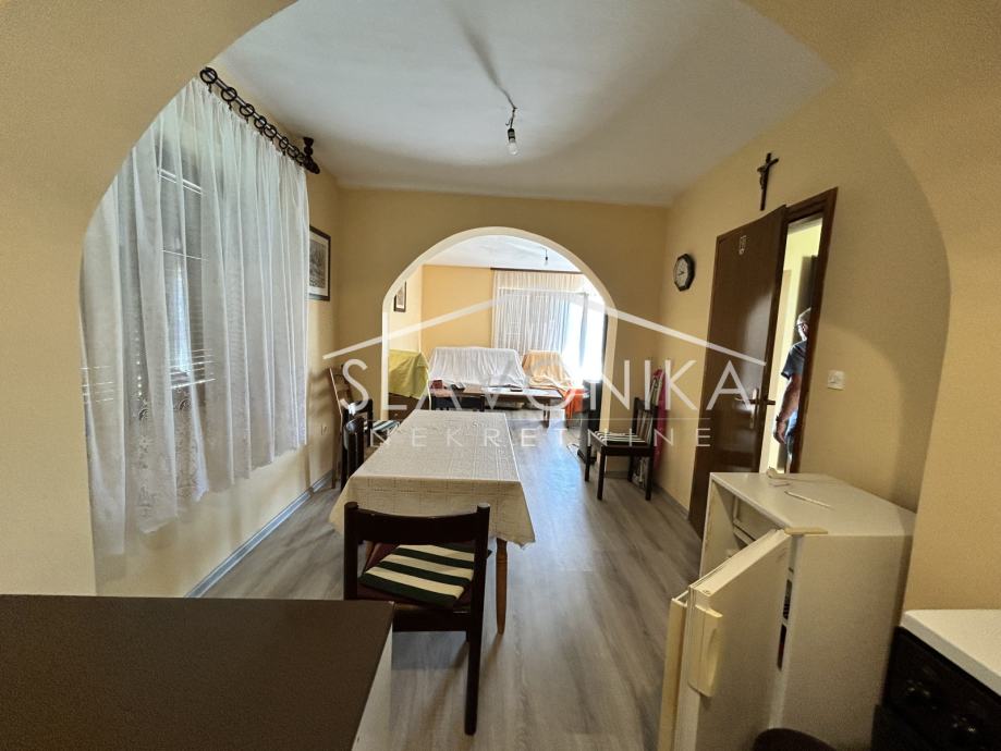 Predmetna nekretnina koja se sastoji od podruma pod cijelom površinom kuće, visokog prizemlja sa velikom terasom i balkonom, te katom i potkrovljem. Prizemlje se sastoji od dnevne sobe, kuhinje sa trpezarijom, ostave, kupatila, te dvostranog stubišta, ka katu i podrumu; dok na katu imamo 3 spavaće sobe i kupatilo.