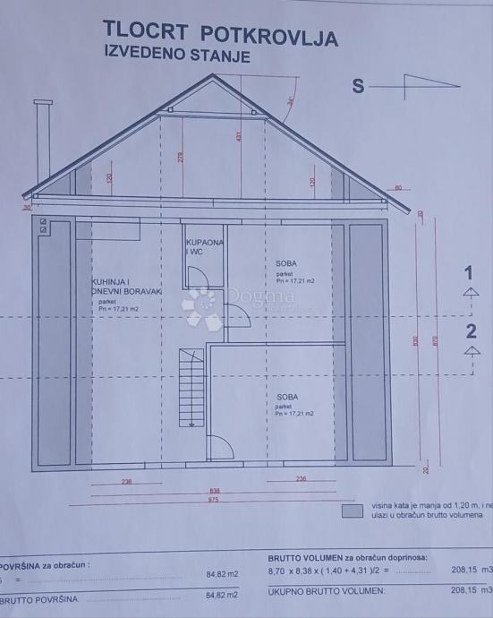 Potkrovlje (80 m²): 2 sobe + open space, čajna kuhinja, kupaonica s WC-om
