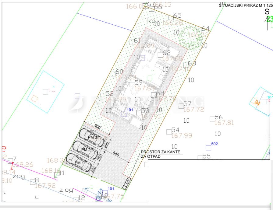 VANJSKO PARKIRNO MJESTO: uz kuću se kupuje jedno parkirno mjesto površine 13 m2 (obračunato po koeficijentu iznosi 3,25 m2)