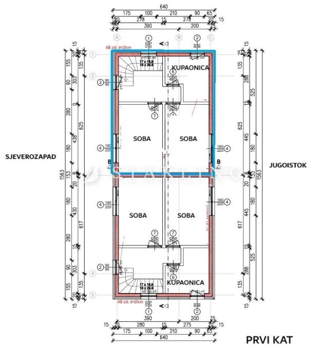 - KATA: stubište, hodnik, 2 spavaće sobe i kupaonica