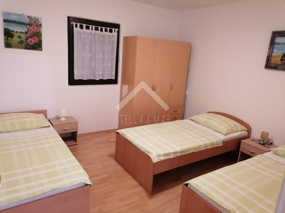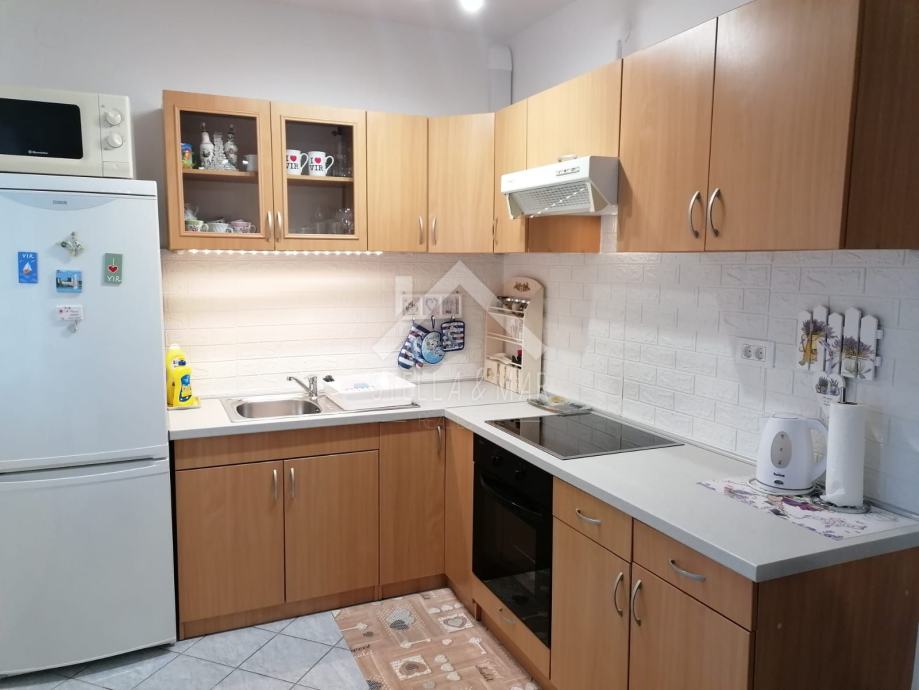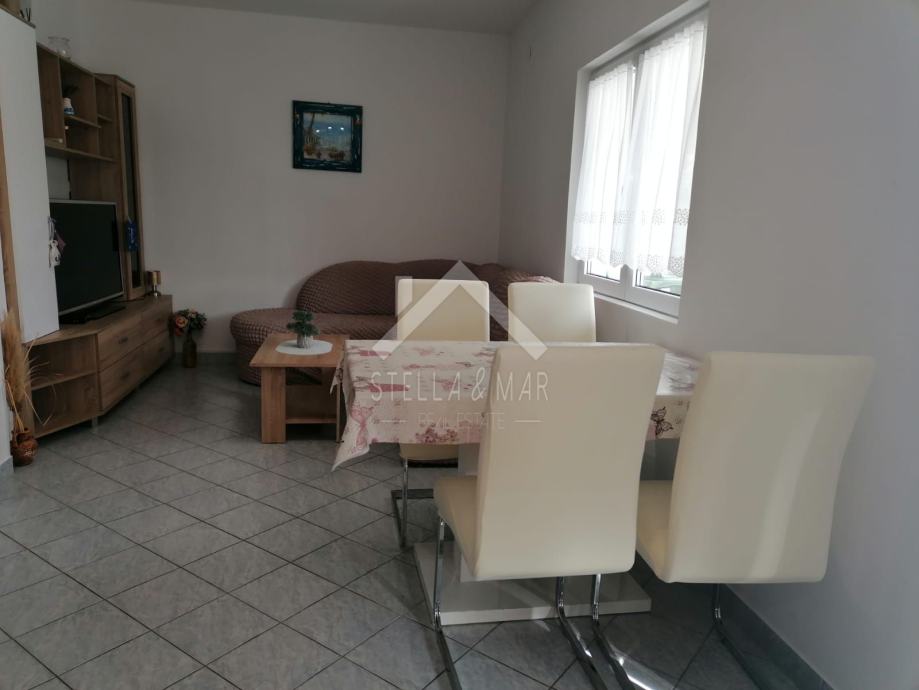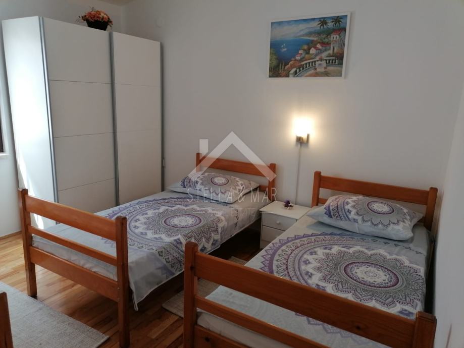 Objekt je izgrađen na zemljištu površine 151m2, 86m2 tlocrtna površine objekta. Svaki stan sastoji se od kuhinje sa blagovaonicom, dnevnog boravka, kupanice, 2 spavaće sobe i prostranih terasa. Idealna nekretnina i za bavljenje turističkim iznajmljivanjem.