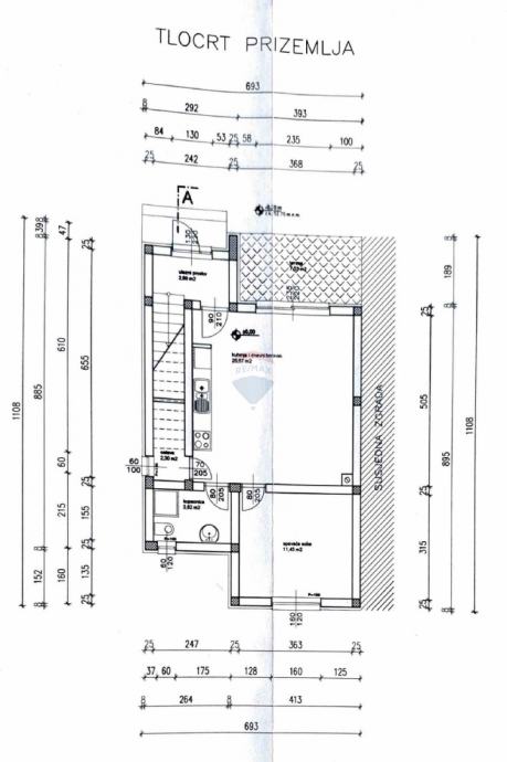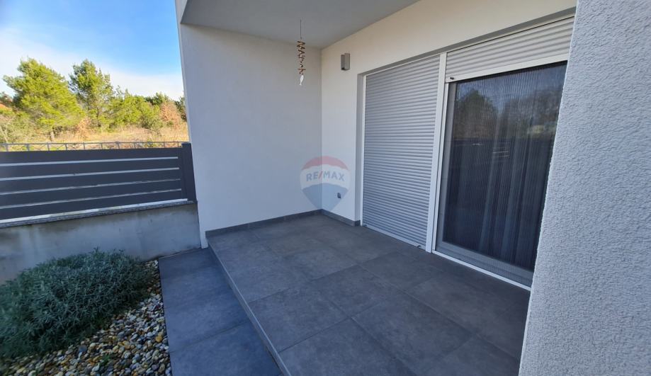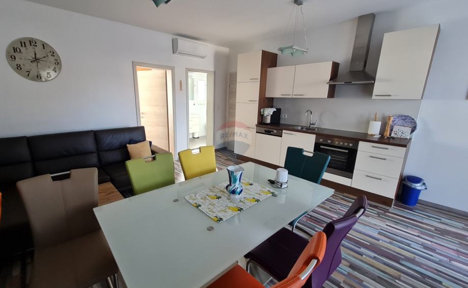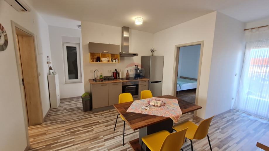 U prizemlju stambene površine 62 m2 nalazi se stan koji se sastoji od hodnika, kuhinje s blagovaonicom i dnevnog boravka s izlazom na terasu površine 7,75 m2.