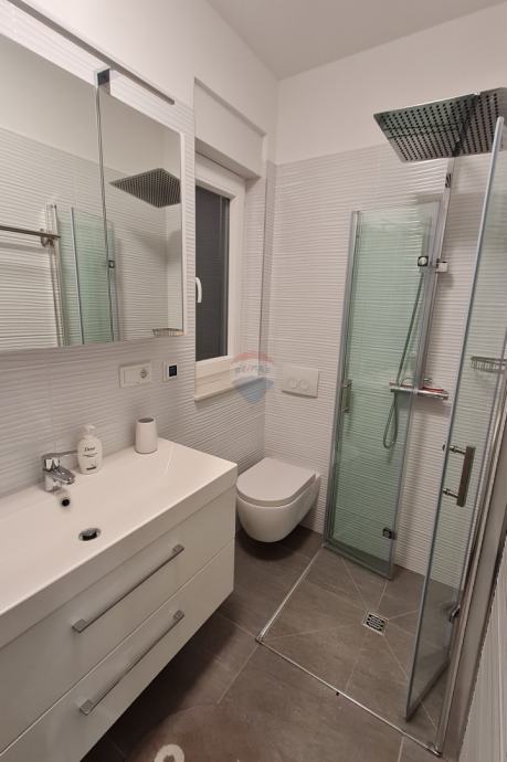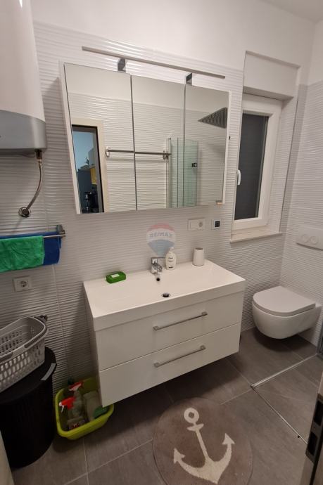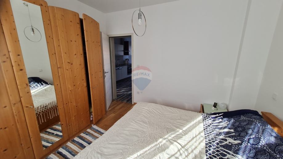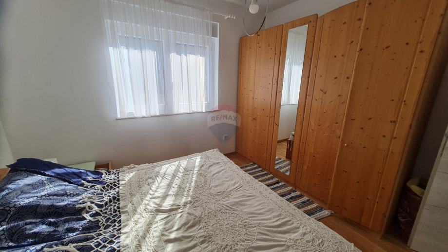 Unutarnjim stepenicama se izlazi na kat koji se sastoji od dvosobnog stana stambene površine 62 m2. Stan sadrži ulazni hodnik, kuhinju s blagovaonicom i dnevnim boravkom, terase površine 7,75 m2, dvije spavaće sobe i kupaonice.