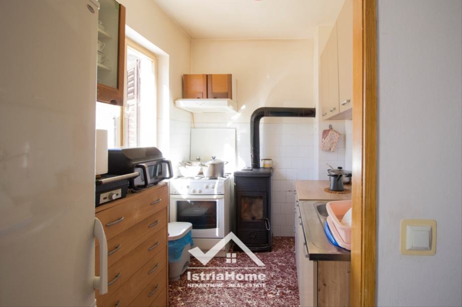 Na svakom katu kuće se nalazi po jedan stan koji ima površinu od cca 100 m2 i sastoji se od 3 spavaće sobe, kupaonice, hodnika, dnevnog boravka, kuhinje i blagovaonice i terase. Sa terase na 1. katu pruža se prekrasan pogled na more i otok Cres.
