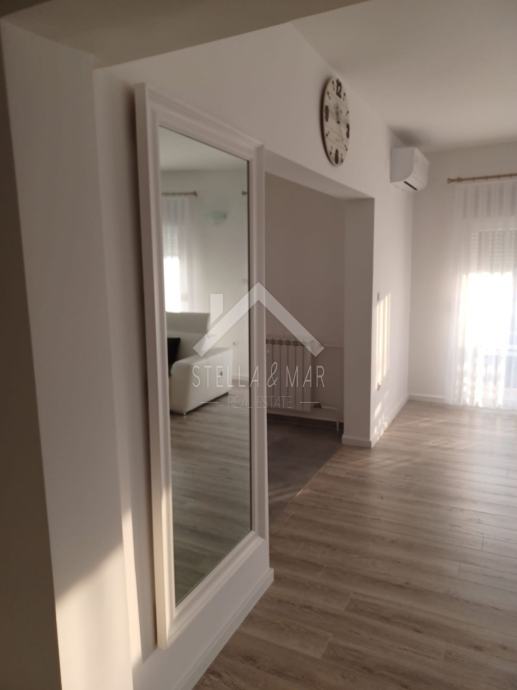 Svaki stan se sastoji od kuhinje sa blagovaonicom, dnevnog boravka, 2 spavaće sobe, hodnika, kupaonice i terase. Stan na 1. katu je potpuno novouređen. Novi krov (crni crijep) napravljen je prošlu godinu. Kuća ima centralno grijanje. U neposrednoj blizini kuće nalazi se autobusna stanica, škola, vrtić, trgovina.. Udaljenost od Arene Zagreb je cca 12km. Lokacija nekretnine je mirna, idealna za obiteljski život. Kroz cca. 20-30 minuta vožnje centar Zagreba. Na kući je stavljena kompletno nova PVC stolarija sa aluminijskim roletama i rolo komarnicima.