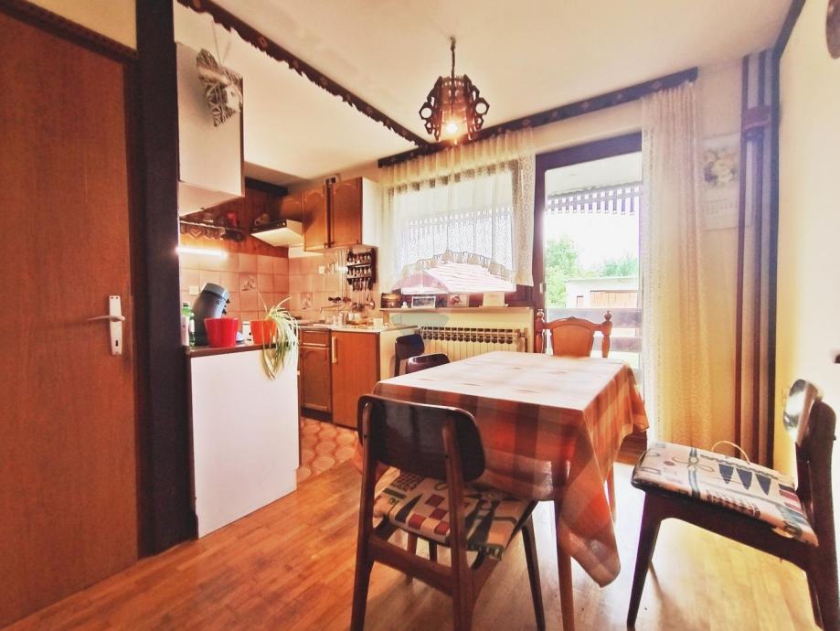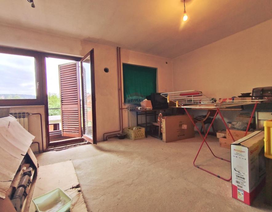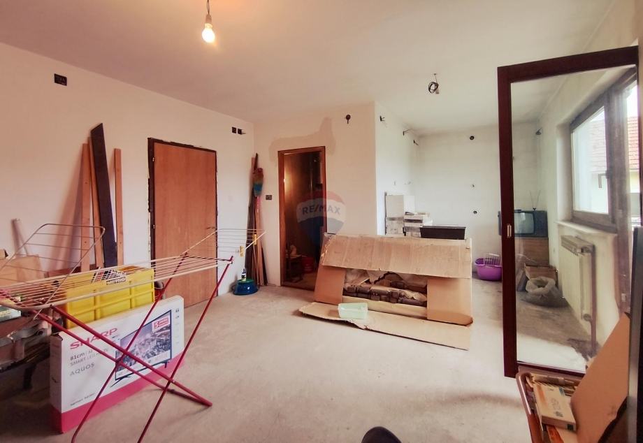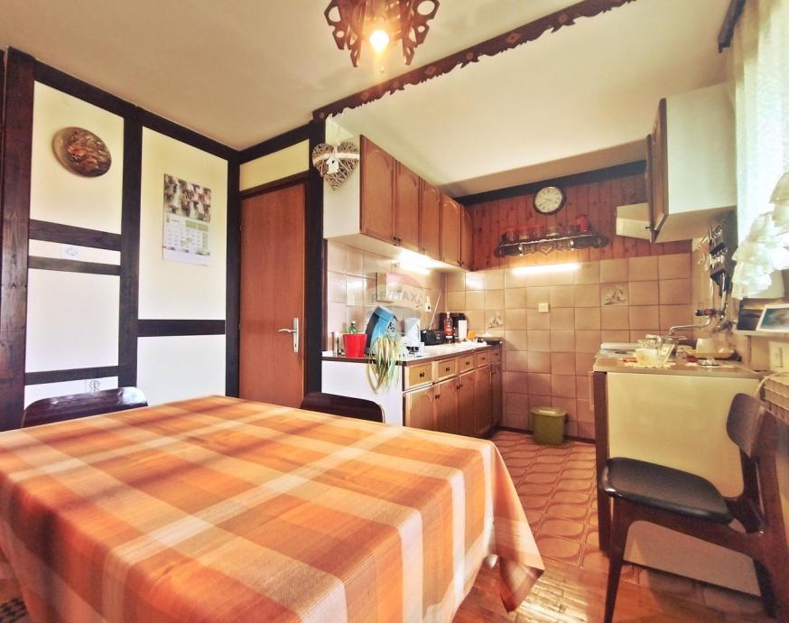 U podrumu, u manjoj od dviju prostorija, nalazi se peć na drva namijenjena centralnom grijanju i grijanju tople vode. Visoko prizemlje je potpuno namješteno te obuhvaća kuhinju, blagovaonicu s izlazom na prostranu terasu, kupaonicu, sobu i hodnik u sklopu kojeg se nalaze stepenice za podrum i kat. Na katu se nalaze dvije u potpunosti namještene sobe, od kojih jedna ima izlaz na veliki balkon. Ostatak kata – kupaonica, dnevni boravak i kuhinja otvorenog tipa – nalazi se u roh-bau fazi, što vam omogućuje finalizaciju i uređenje prema vlastitim željama. Iz tog prostora omogućen je izlaz na balkon/terasu s prekrasnim pogledom na zeleno dvorište.