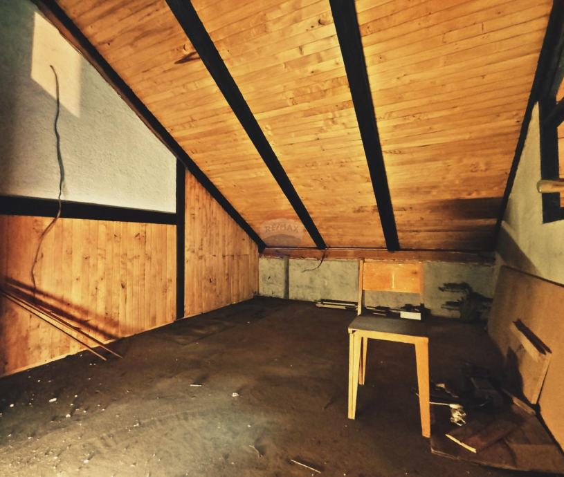 S kata hrastove stepenice vode u potkrovlje koje je također ostavljeno u roh-bau izvedbi. Visina do sljemena iznosi 4 m, a visina vanjskih zidova je 0,85 m od betonske ploče.