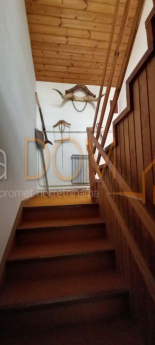 - ulazni hodnik, velika kuhinja sa blagovaonicom, dnevni boravak sa kaminom, unutarnje stepenice koje vode na 1 kat