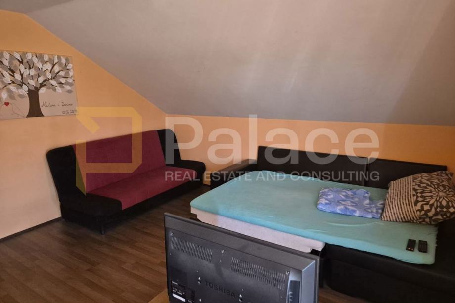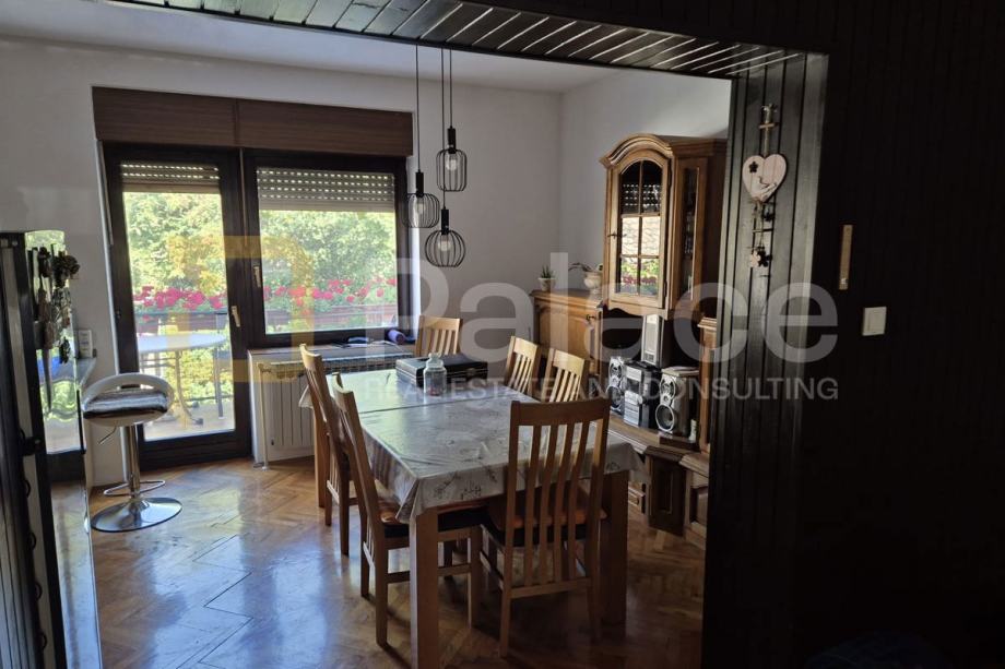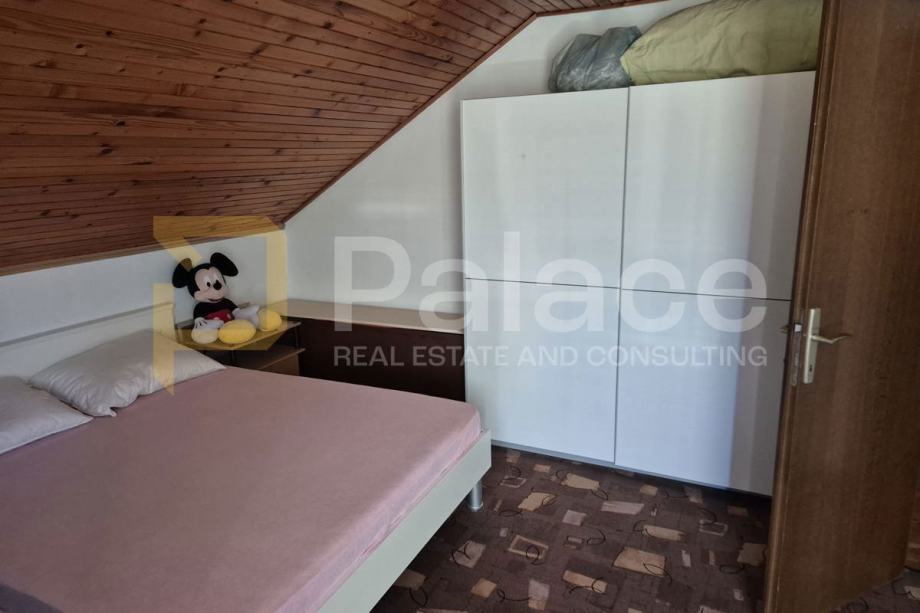 Na prodaju je samostojeća visoka prizemnica koja se sastoji od prizemlja, kata i podruma.1.Prizemlje se sastoji od kuhinje, blagovaonice i dnevnog boravka (otvorenog tipa), spavaće sobe, kupaonice sa wc-om i hodnika. Blagovaonica ima izlaz na balkon iz kojeg se može pristupiti u dvorište.2.Na katu se nalaze 3 spavaće sobe, kupaonica, ostava i hodnik te balkon.3.Podrum se sastoji od 2 prostorije, garaže sa radionicom i wc-a.