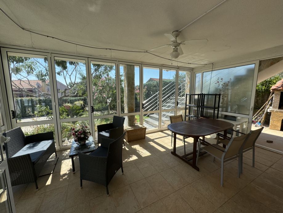 Samostojeća kuća, 210 m2, 4 sobe, 2 kupaonice, solarni paneli, grijani bazen, 717 m2 okućnica, panoramski pogled na more, 10 minuta od grada Krka. Prilika za investiciju.