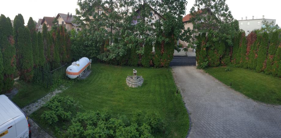 Vrt: Automatsko navodnjavanje trave. Industrijska struja. Tri priključka za vodu. Kovana ograda ispred koje su 70 čempresa. UKP spremnik plina 4m2. Cca 500 m2 trave.