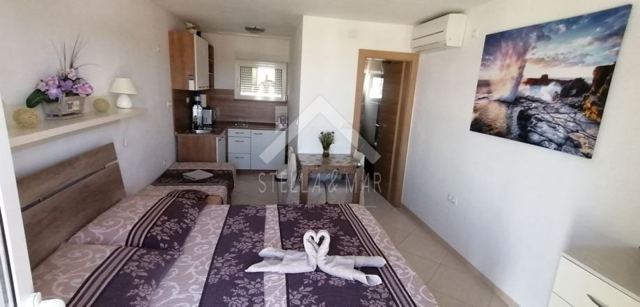 Posebnim vanjskim stubištem dolazi se na kat gdje se nalaze dva odvojena studio apartmana.