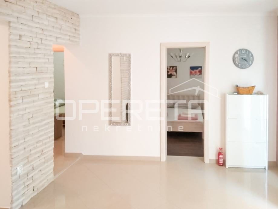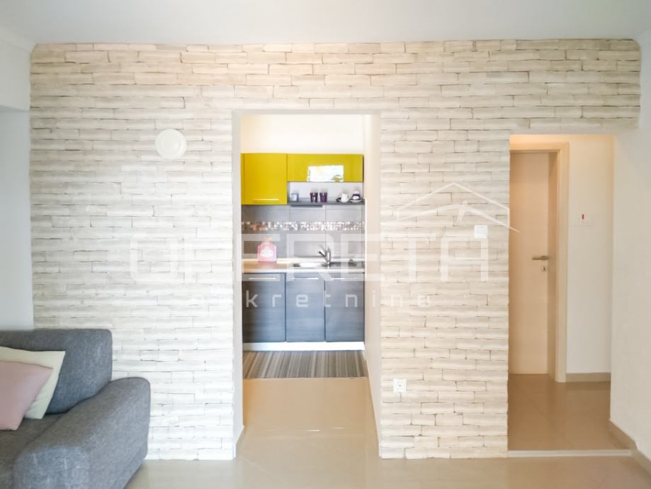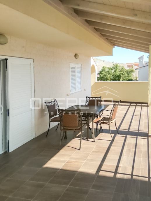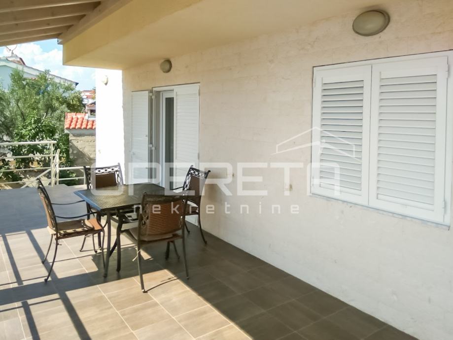 U prizemlju kuće nalazi se jednosobni apartman površine 40 m², na prvom katu smješten je prostrani dvosobni apartman s velikom natkrivenom terasom od 30 m², s koje se pruža prekrasan pogled na more. Drugi kat također nudi dvosobni apartman površine 60 m², koji ima natkrivenu terasu od 12 m², također s pogledom na more i okolne otoke.