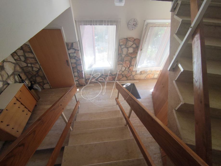 Kući pripada i zatvoreno dvorište od 47 m2. Kuća je podijeljena na 3 jednosobna stana, odvojena unutarnjim stepenicama.
